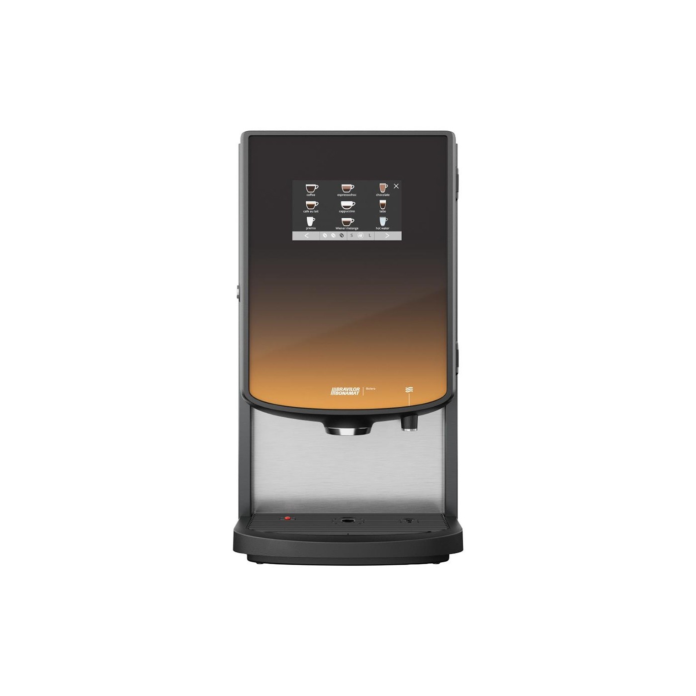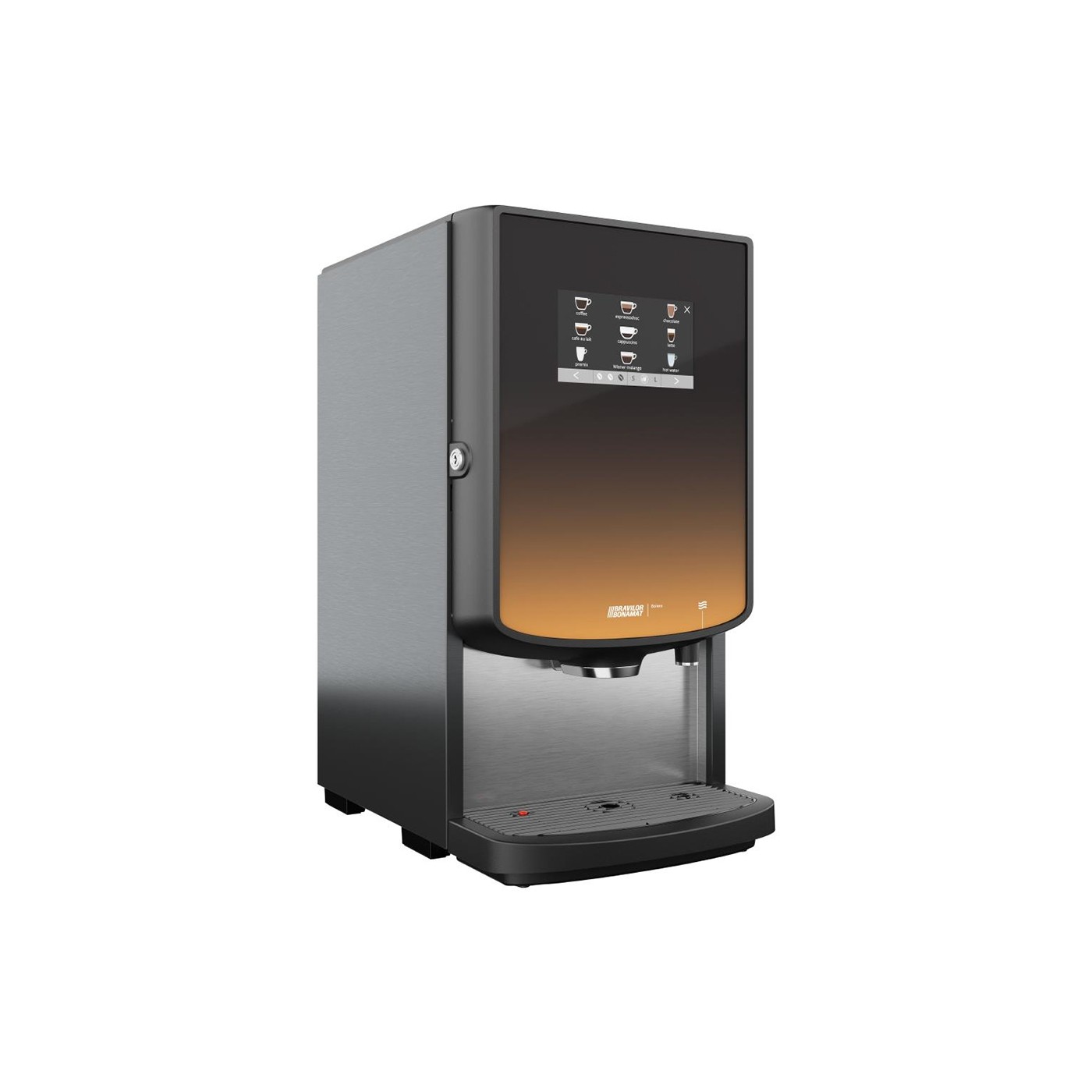 The Bolero 32 offers a wide range of beverages, up to 36 in total. The touchscreen offers a maximum of four screens offering a maximum of nine beverages per screen. You can, for example, combine instant coffee, topping (milk powder) and cocoa.