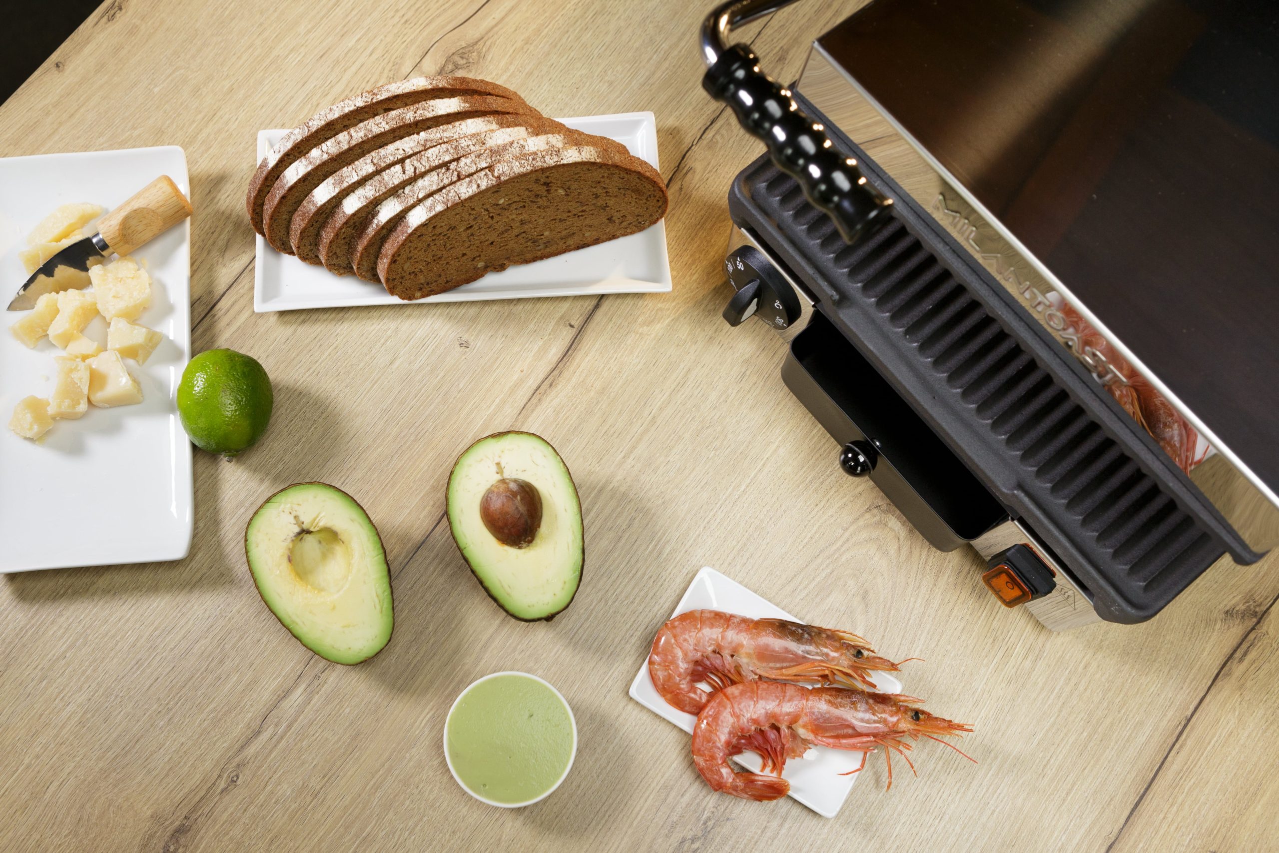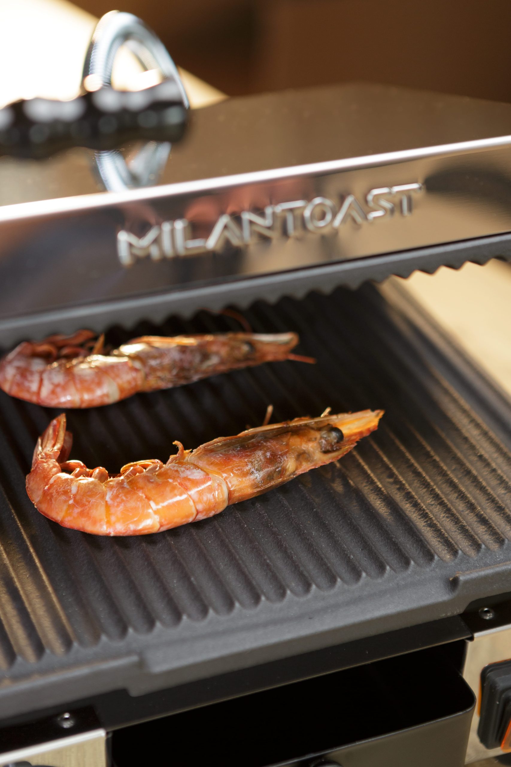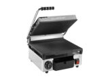 Professional cast iron contact grill with stainless steel structure and cast iron non-stick plates, made with special surface ceramic coating that makes plates highly resistant to acids, salt and corrosion, as well as allowing easy and quick cleaning.