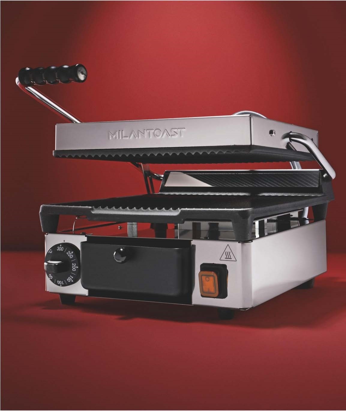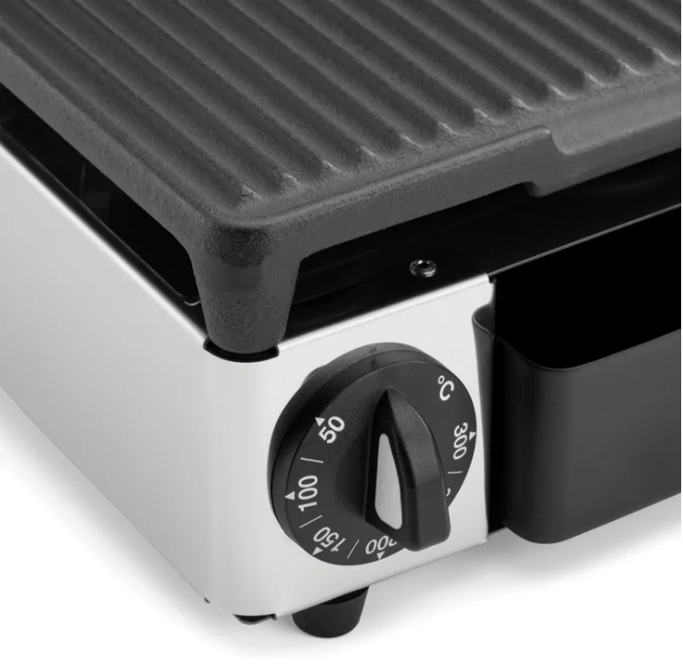 This electric Grill is the best grill for commercial kitchens: it is very easy to use with its self-balancing top plate with adjustable closing pressure to food’s thickness and fat drainage in the lower part. Cooking is uniform thanks to the long-life stainless steel heating elements, temperature is adjustable with stainless steel thermostat up to 300° C. , on/off switch with orange pilot lamp, ergonomic soft-touch knob. This electric grill is also equipped with a practical, dishwasher-safe fat/drip tray and is easy to with the supplied cleaning brush.