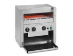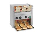 This high volume bun toaster can toast bread slices, Texas toasts, buns, rolls or bagels and can keep up with the pace of your busy restaurant kitchen or advanced fast food establishment, especially when burgers are grilled beforehand and buns need to be toasted as fast as possible.