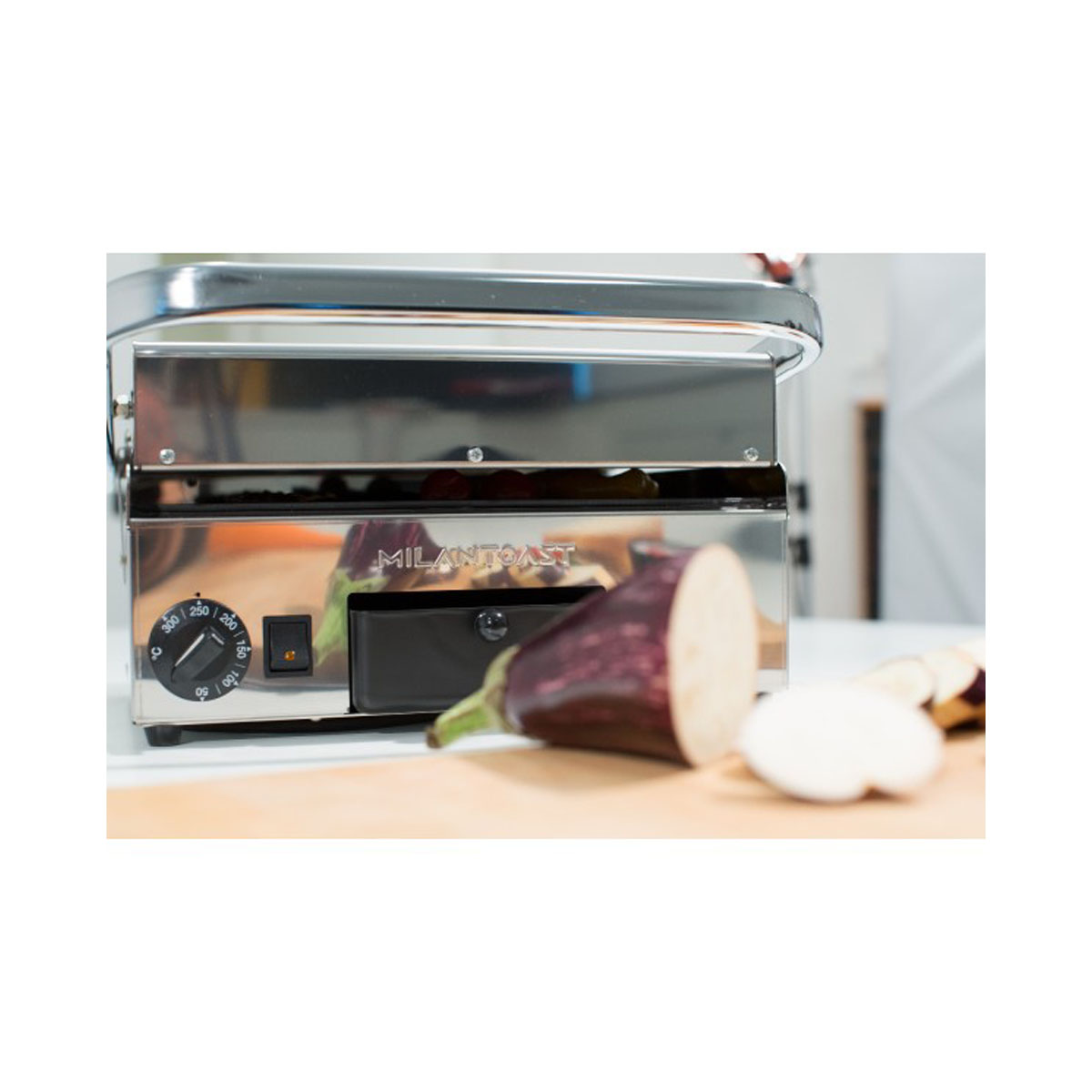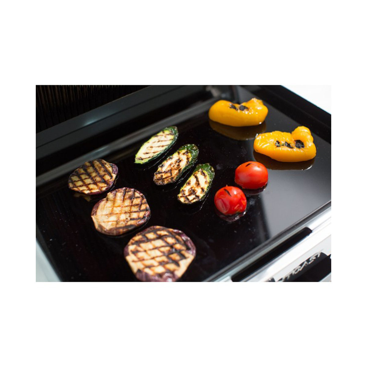 Smooth top plate with slightly balanced and adjustable inclination, variable contact pressure and grease drainage at the bottom. This electric grill plate is also equipped with a handy dishwasher-safe grease and crumb collection drawer.
