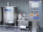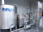 A 600 Litre batch mixplant from Tecnofreeze. The skid mounted unit blends the basic ingredients, pasteurises and cools ready for freezing of the ice cream mix.